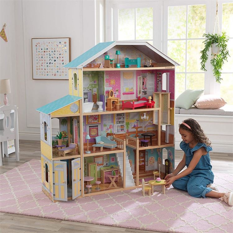 Проведіть години, граючи з ляльковим будиночком Majestic Mansion. Цей особняк заввишки 136 см має 4 поверхи, 8 кімнат, парадні сходи та розсувний ліфт для транспортування ляльок вашої дитини. Цей просторий ляльковий будиночок містить 34-набір аксесуарів для меблів, де діти зможуть годинами весело досліджувати величний особняк зі своїми модними ляльками 12-дюймів (30-см).